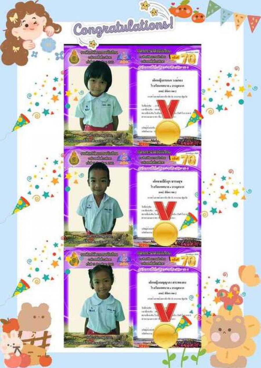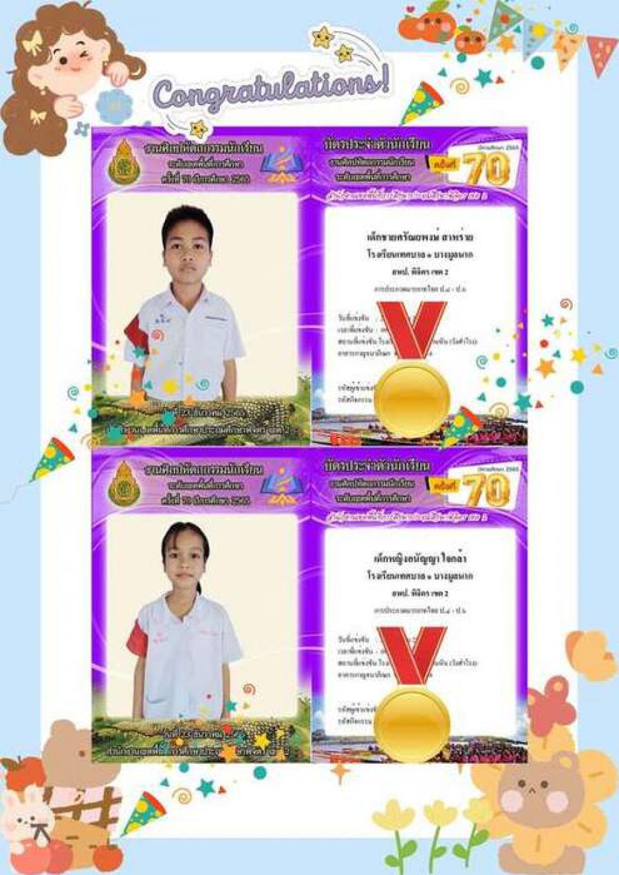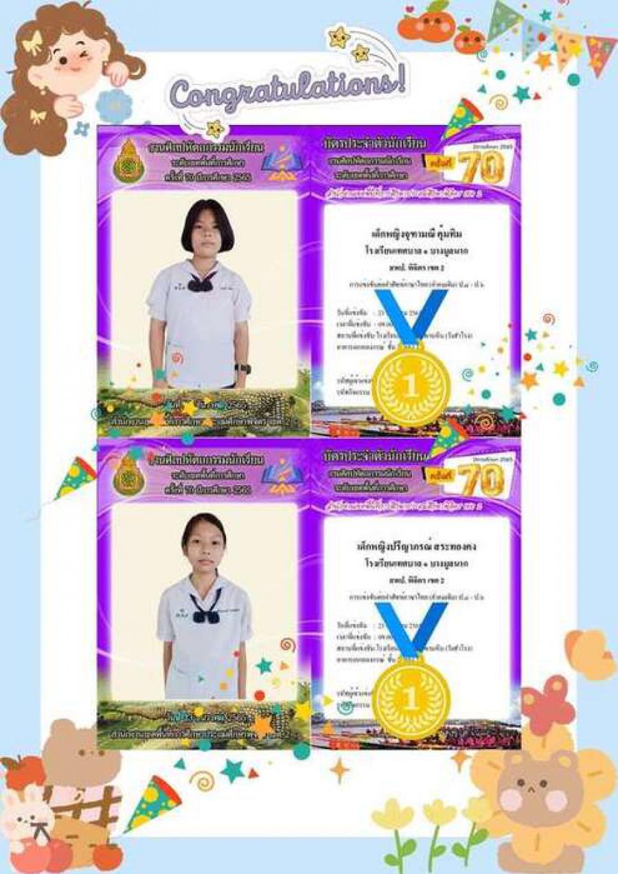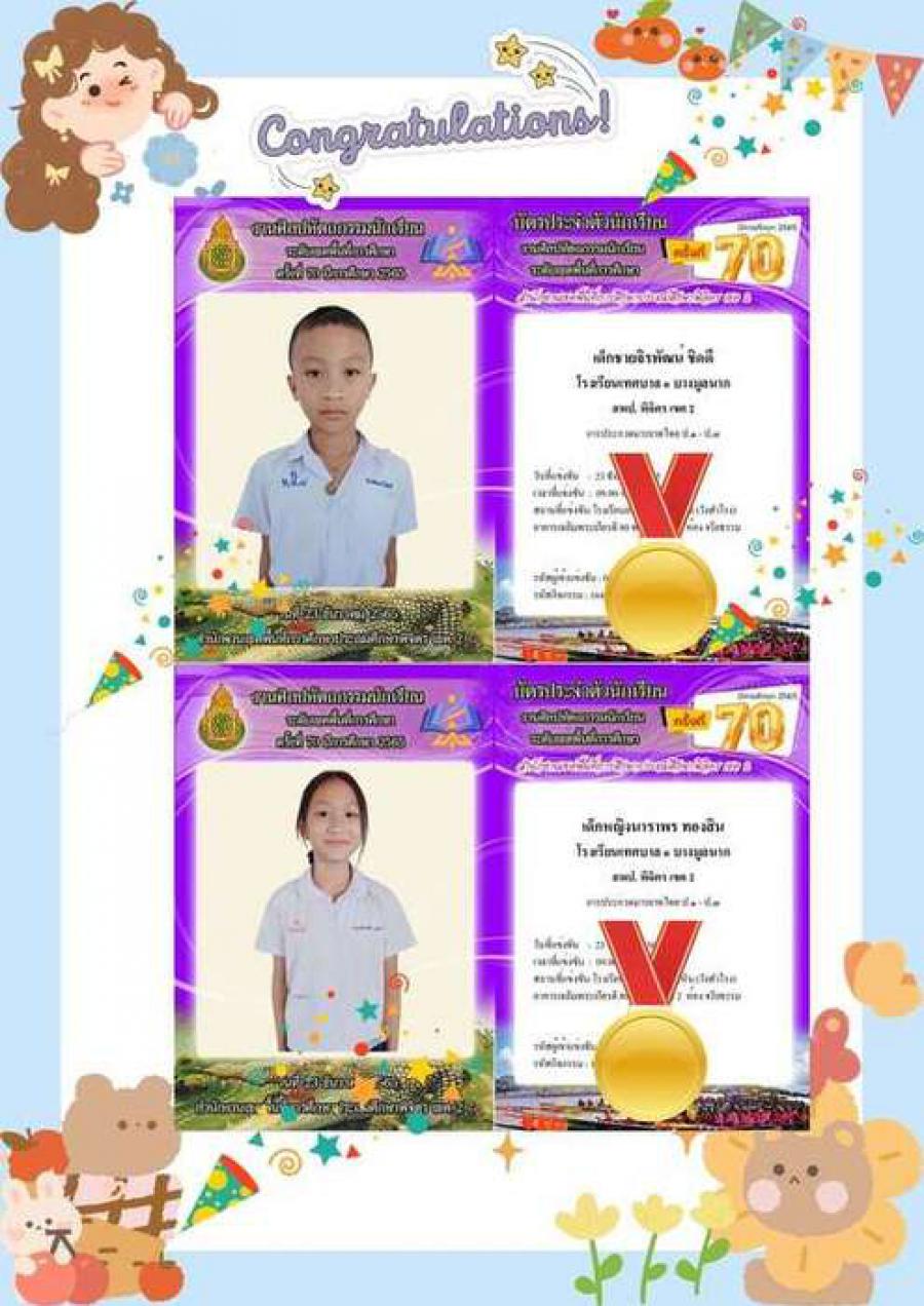 สรุปผลกิจกรรมแข่งขัน โรงเรียนเทศบาล ๑ บางมูลนาก งานศิลปหัตถกรรมนักเรียน ระดับเขตพื้นที่การศึกษา ครั้งที่ 70 ปีการศึกษา 2565 สังกัดสำนักงานเขตพื้นที่การศึกษาประถมศึกษาพิจิตร เขต 2 จำนวน 10 รายการ ดังนี้ 1.การแข่งขันต่อคำศัพท์ภาษาไทย (คำคมเดิม) ป.4-ป.6 #เหรียญทอง ชนะเลิศ 2.การประกวดมารยาทไทย ป.1-ป.3 #เหรียญทอง 3.การประกวดมารยาทไทย ป.4-ป.6 #เหรียญทอง 4.การแข่งขันขับร้องเพลงไทยลูกทุ่ง ประเภทหญิง ป.1-ป.6 #เหรียญทอง 5.การแข่งขันขับร้องเพลงไทยลูกกรุง ประเภทหญิง ป.1-ป.6 #เหรียญทอง 6.การแข่งขันการใช้โปรแกรมนำเสนอ (Presentation) ป.4-ป.6 #เหรียญทอง 7.การประกวดโครงงานอาชีพ ป.4-ป.6 #เหรียญทอง 8.การสร้างภาพด้วยการฉีก ตัด ปะ กระดาษ ปฐมวัย #เหรียญทอง 9.การประกวดผลงานสิ่งประดิษฐ์ทางวิทยาศาสตร์ ป.1-ป.6 #เหรียญเงิน 10.การแข่งขันขับร้องเพลงพระราชนิพนธ์ ประเภทหญิง ป.1-ป.6 #เหรียญทองแดง S:0